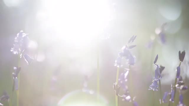 Timelapse of Bluebells in an English woodland backlit by the sun. Shot with a shallow depth of field and flower in the foreground in focus. Camera dollies in. Shot through a Canon EF 85mm f1.8 @ f1.8 with a 1/50 sec exposure. Captured at 1 frame every 5 secs as an image sequence in Canon sRAW1 mode.