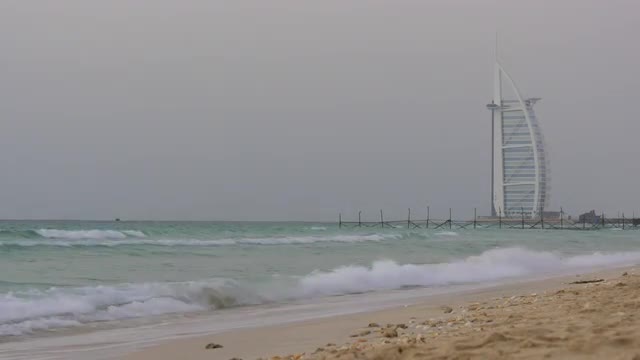 751999 - foggy day dubai city famous sail hotel beach view 4k uae