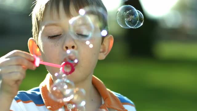 594047 - Little Girl Playing With Bubbles in the Park on a Sunny Day