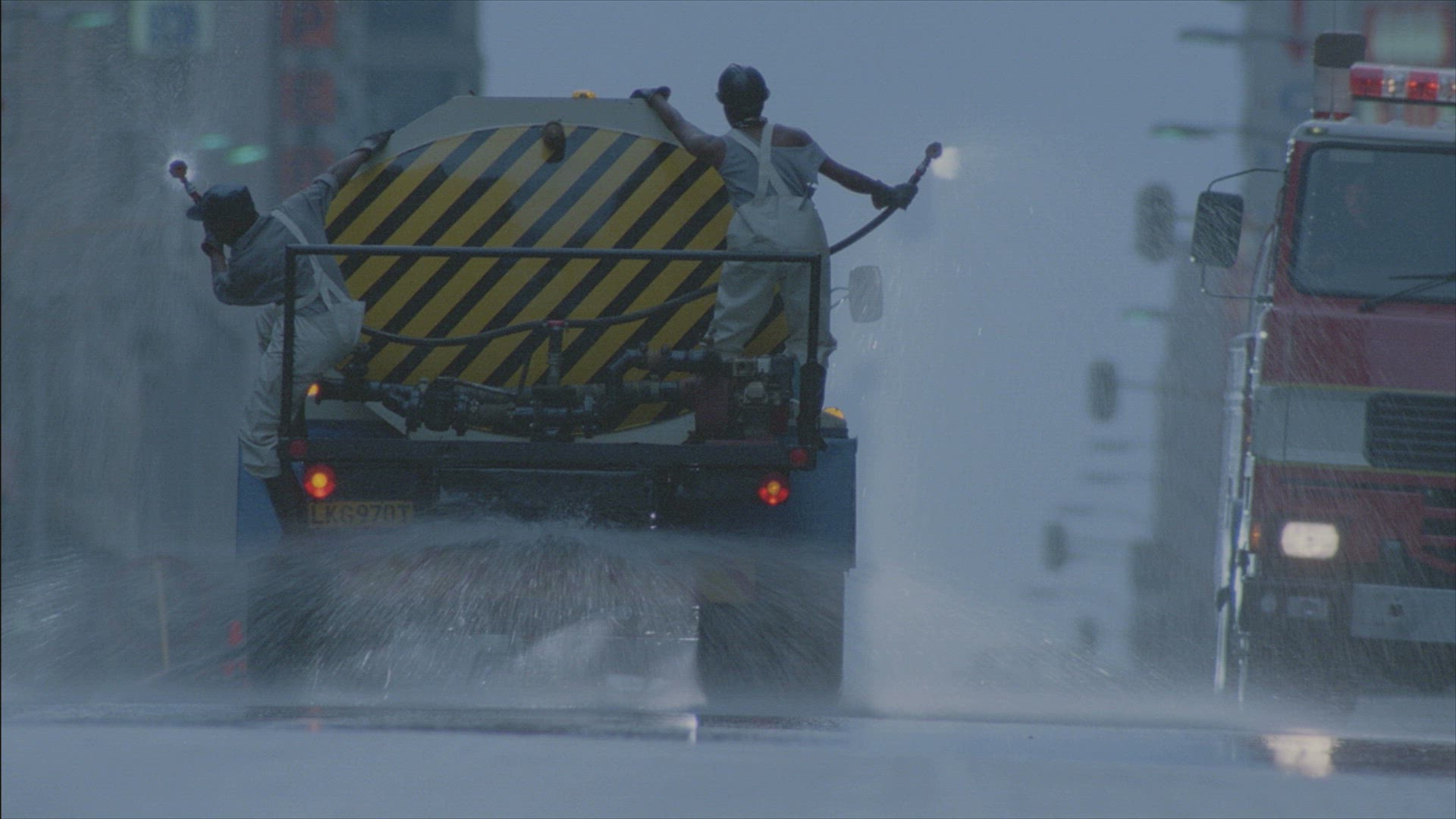 952865 - Rain falling on pavement in slow motion.