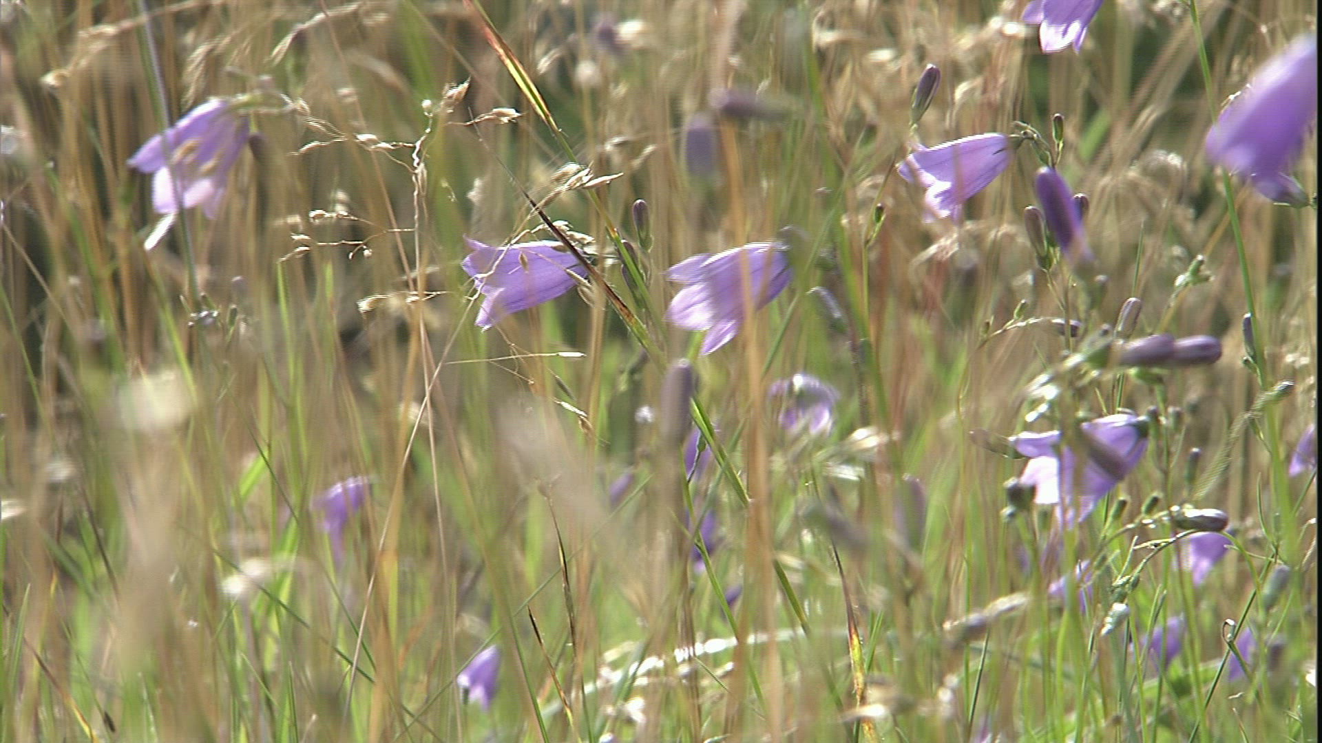 Several species of grasses growing together in an English meadow, backlit by the low evening sun. Species include Crested Dog's-tail (Cynosurus cristatus), Rough Meadow-grass (Poa trivialise) and Yorkshire-fog (Holcus lanais). Shot at 150fps through a Canon CN-E 135mm T2.2 lens @ T2.2 in 4K WS RC 8:1.