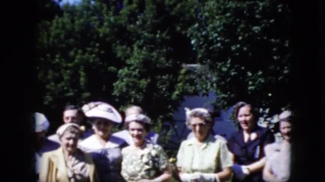 651441 - 1969: group of ladies wearing dresses and hats gather outside on a sunny day CALIFORNIA
