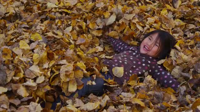 373107 - Young girl playing in fall leaves.