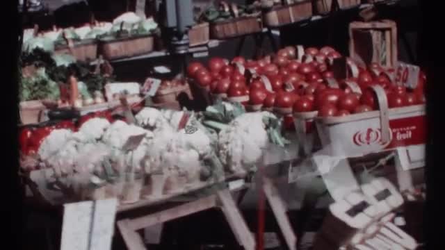 729434 - 1967: visiting outdoor farmer's market containing fruits and vegetables OTTAWA CANADA