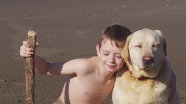 Young boys and dog at the beach