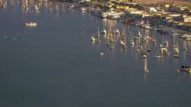 > Zoom out from sailboat in bay