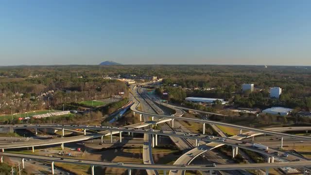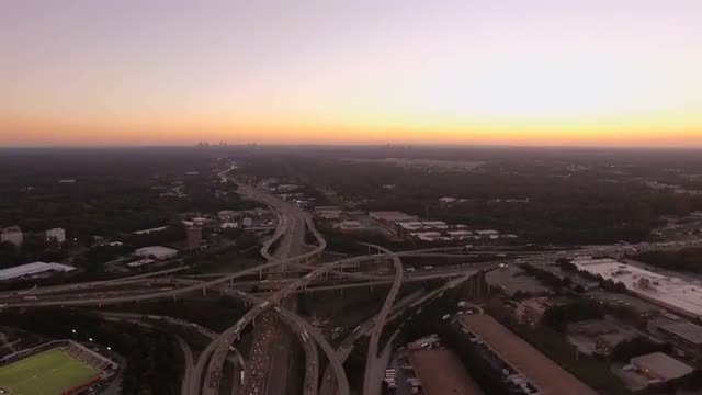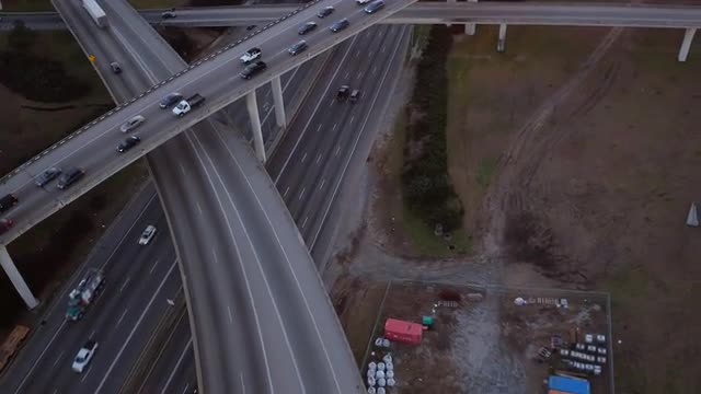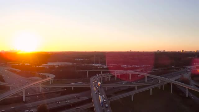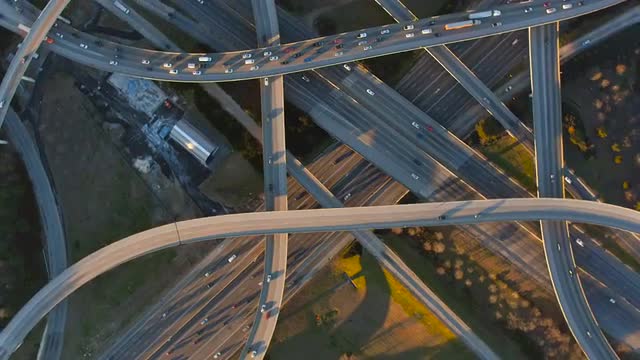 > Aerial view of Los Angeles freeway intersection