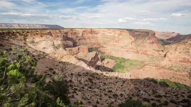 > Time lapse aerial shot of rolling green hills