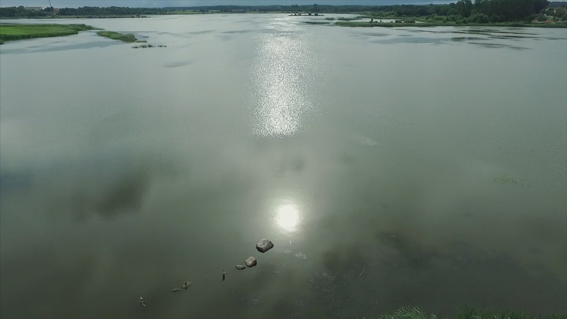 > Sun reflects of streams in Alaskan wilderness