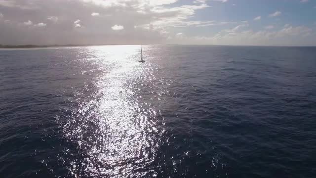 678380 - Aerial shot of sailing yacht in bright sunlight
