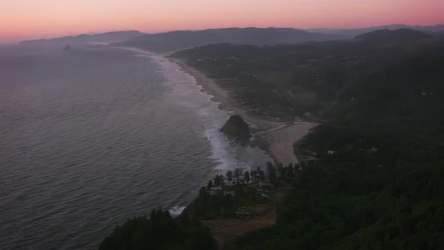 1000076 - Oregon Coast circa-2017, Aerial approach to Proposal Rock in Neskowin, Oregon. Shot with Cineflex a