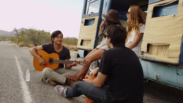 > Group of young people on road trip