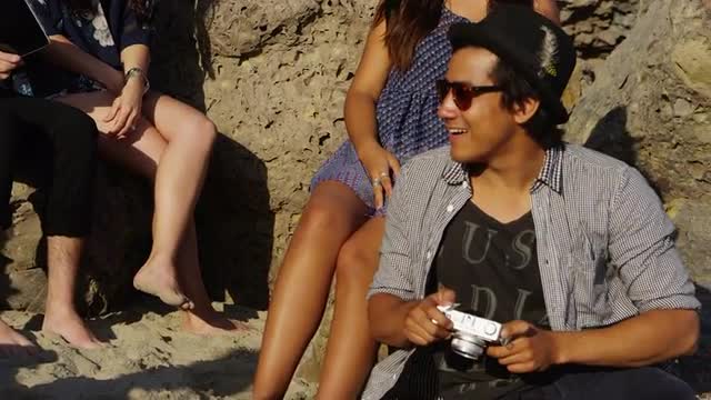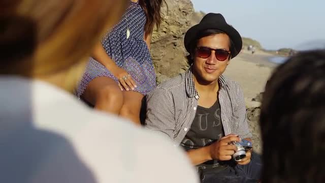 122705 - Group of young people sitting together on van