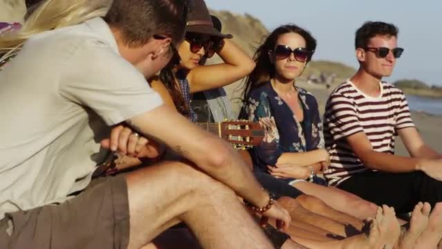 122741 - Young friends hanging out on the beach