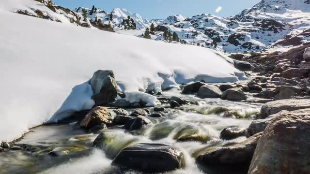 748451 - Beautiful Winter River View Mountains Timelapse 4k