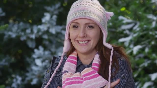 > Portrait of woman in winter