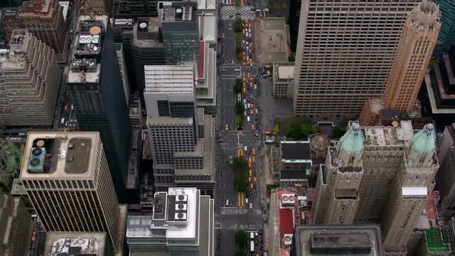 New York City buildings, overhead aerial shot