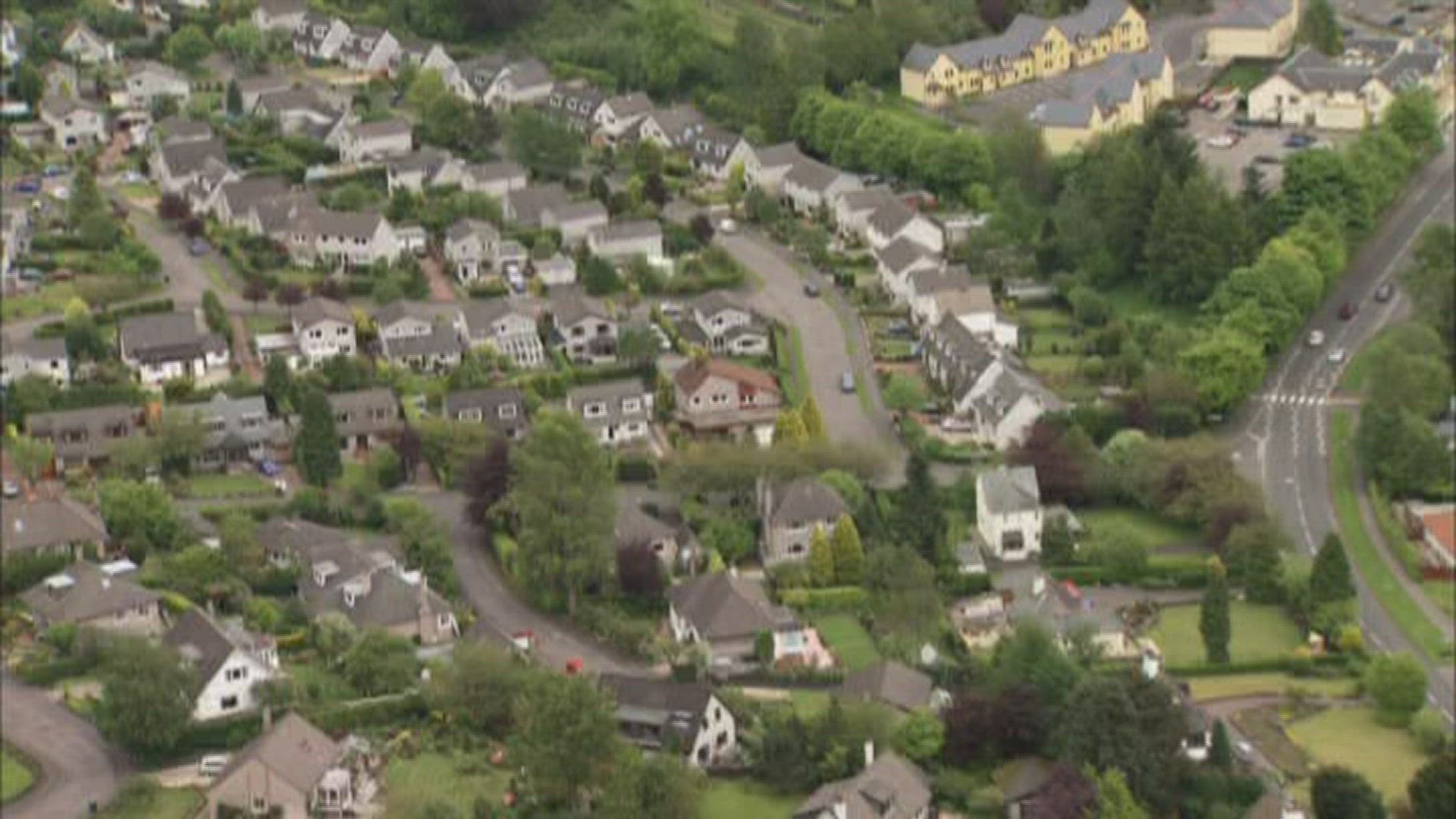 > Aerial shot of New York suburb