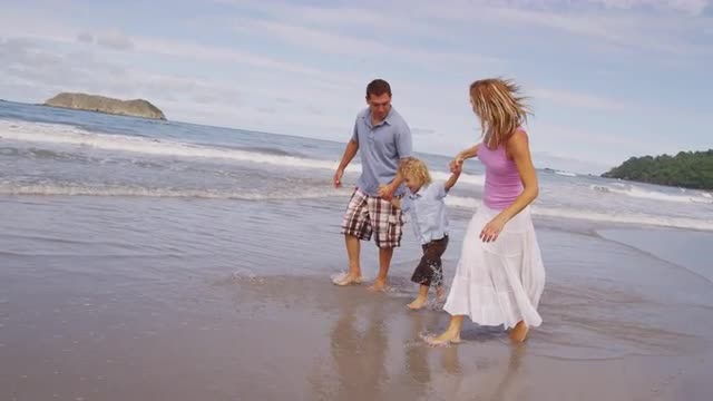 382676 - Parents swinging young son at beach, Costa Rica. Shot on RED EPIC for high quality 4K, UHD, Ultra H
