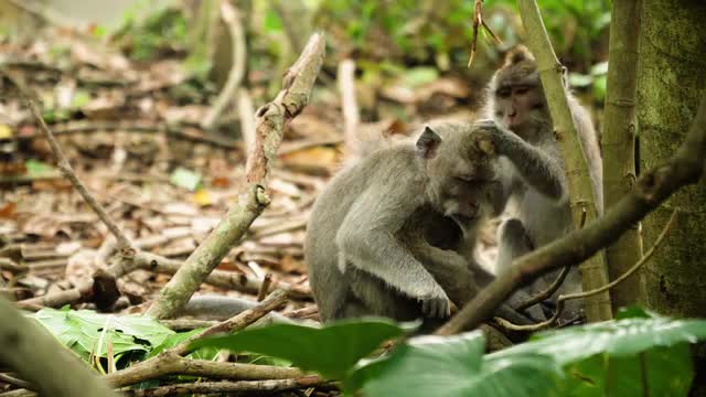 > Capuchin Monkey climbing on palm branch, Manuel Antonio, Costa Rica
