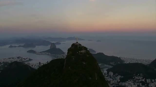 Wide Angle Aerial view of Christ the Redemeer Statueand the city of Rio de Janeiro, Brazil
