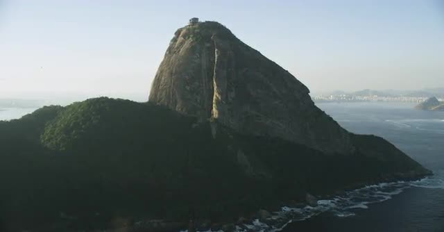 > Flying over mountain tops overlooking, Rio de Janeiro and Ocean, Brazil