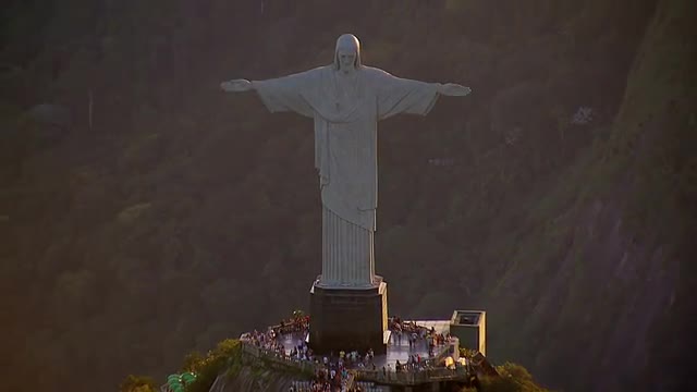 Aerial view of Christ the Redemeer Statue at Sunset, Rio de Janeiro, Brazil