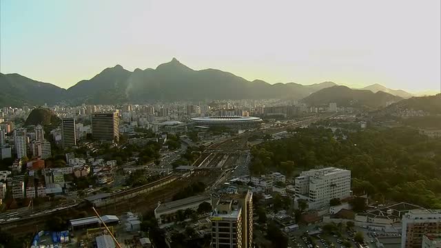 Aerial view of Maracana Stadium and city lights at night, Rio De Janeiro, Brazil