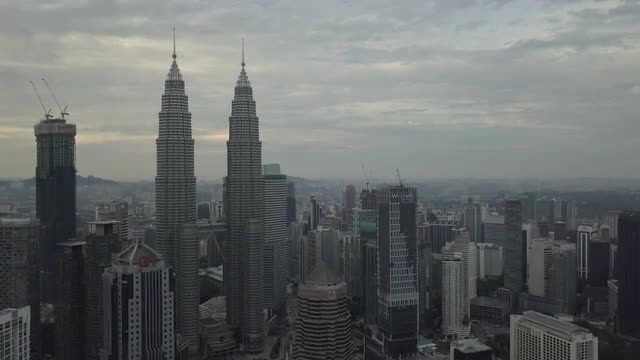 772811 - Aerial Footage - Petronas Towers and KL Tower in the morning. Flat Color Profile.