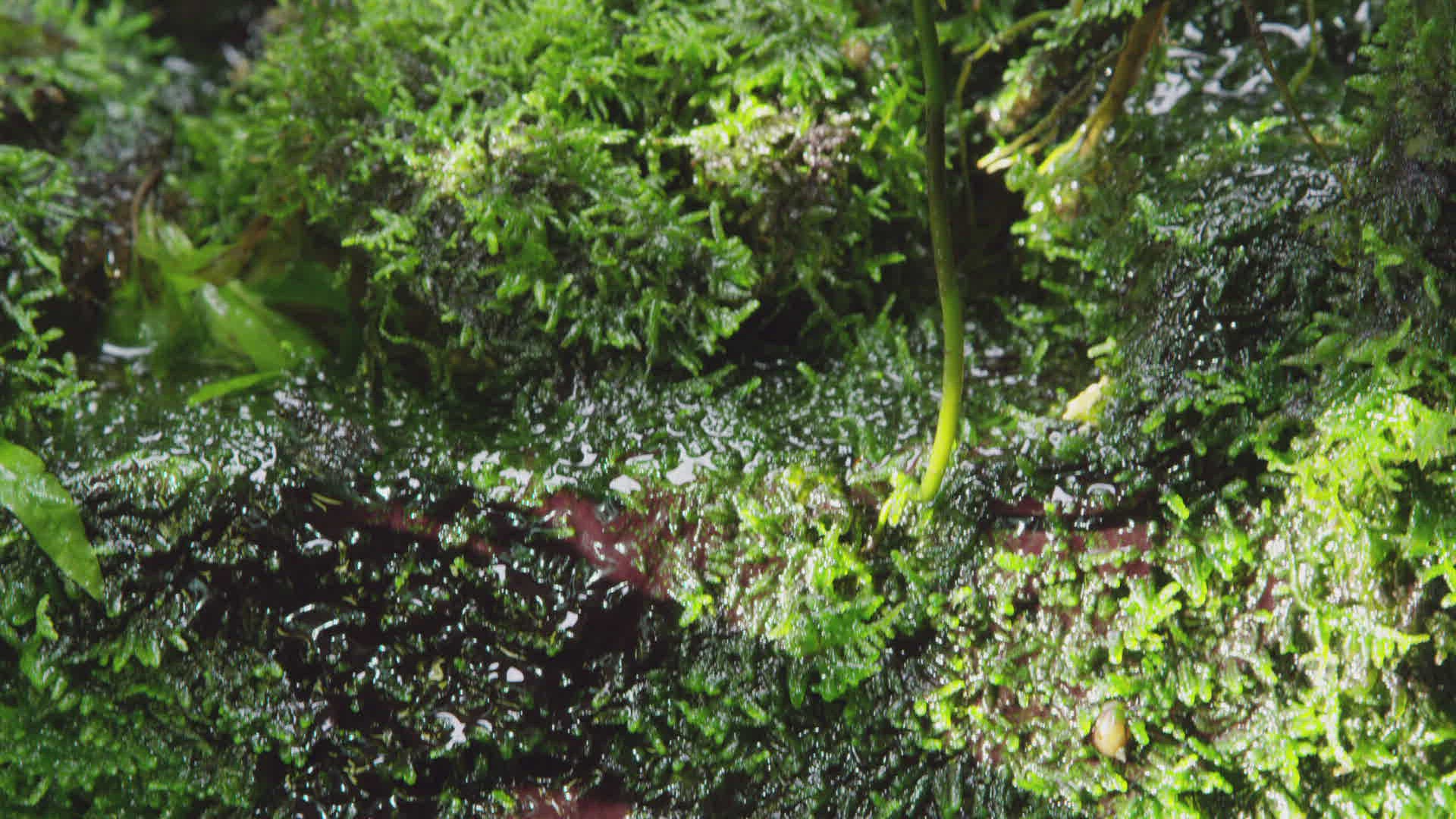 Sun shines onto moss during a cloudy evening in Iceland