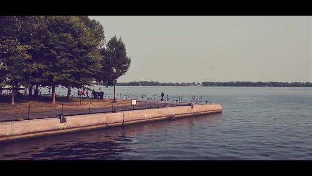 A day to night time lapse of Toronto Skyline at a very colourful sunset seen from lake Ontario