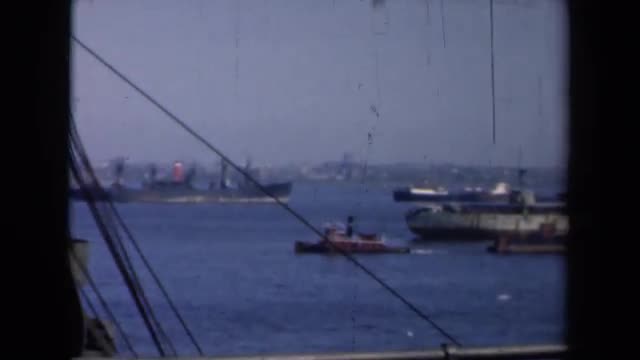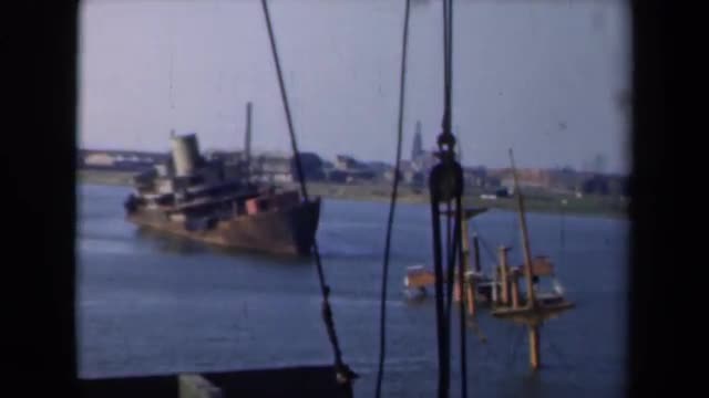 708310 - 1946: ship listing in harbour, filmed by crew on passing ship. NETHERLANDS