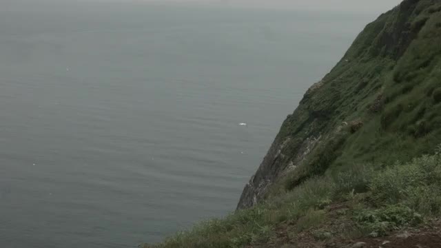 Static LS of gannets along the side of Bonaventure Island.