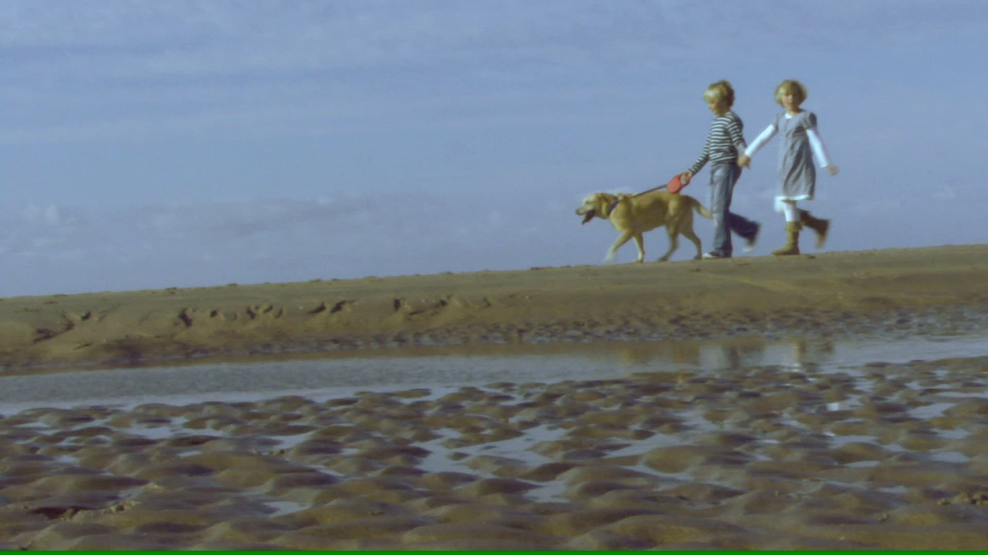 2235577 - Two People Walking a Dog in a Hilly and Mountainous Landscape