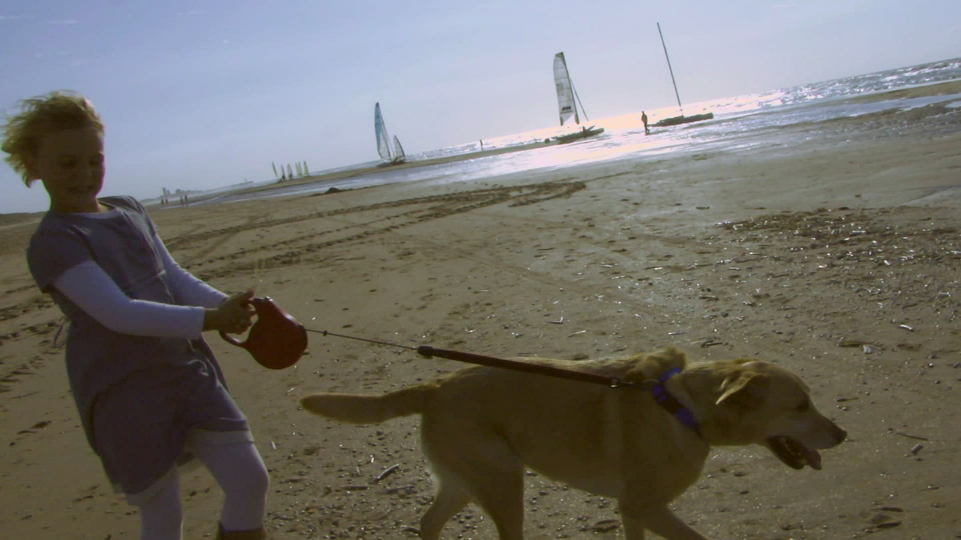 218224 - Slow Motion Of Young Woman Walking Her Beautiful White Swiss Shepherd Dog
