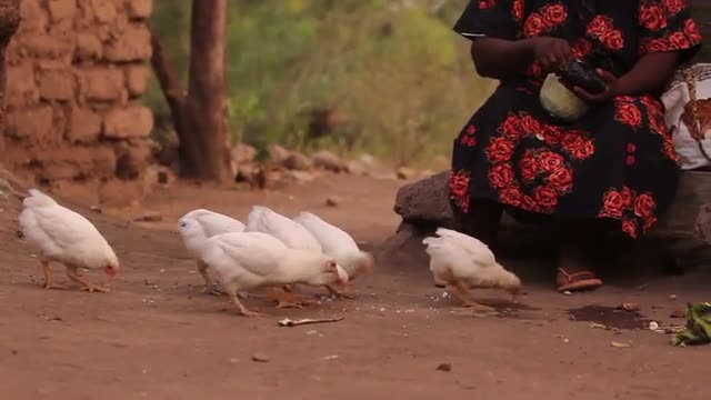 322372 - 6 chicks eating chicken feed in Africa