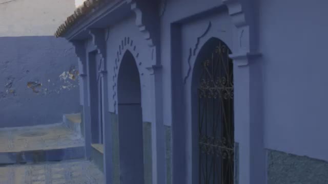 Static CU shot of architecture in Chefchaouen, Morocco.