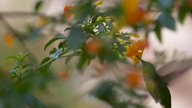 979513 - Mountain velvetbreast feeding in orange flowers, close profile