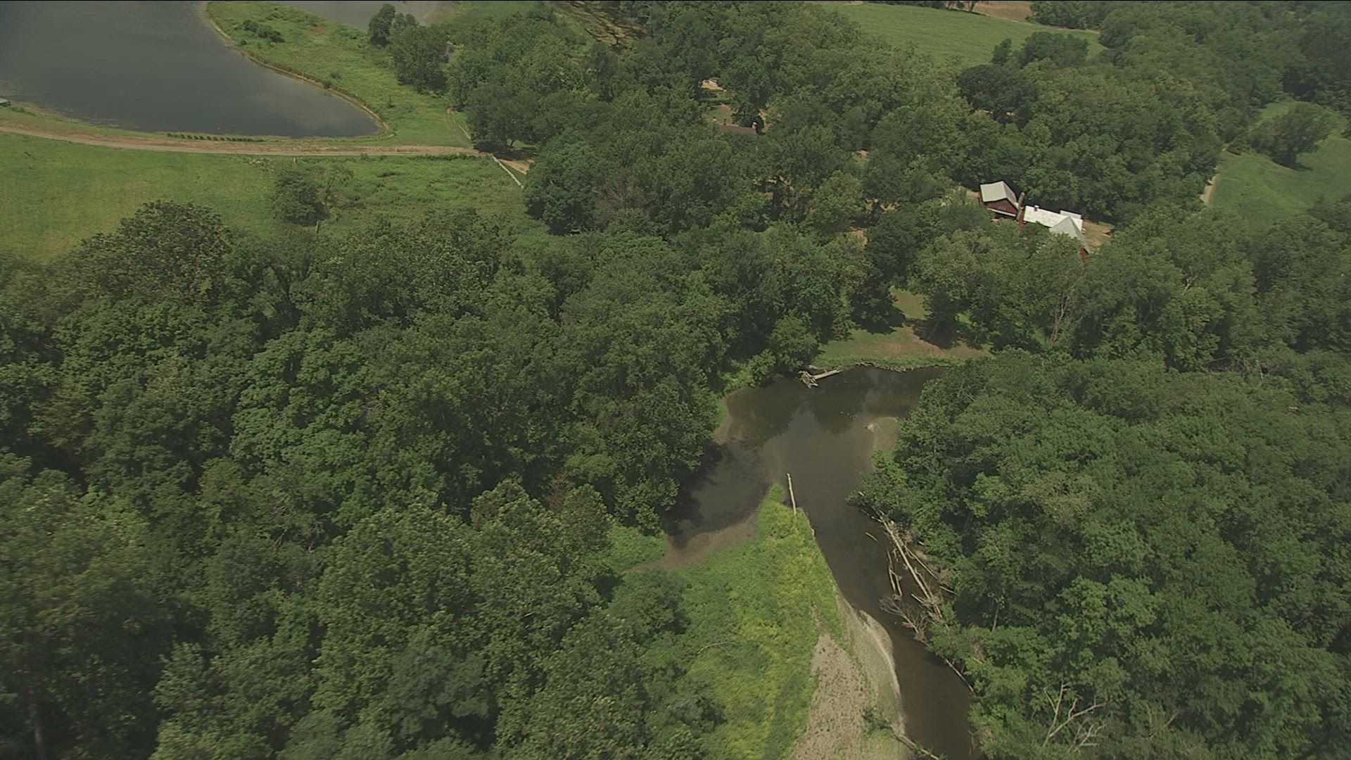 380395 - Aerial shot of Willamette River and Oregon farm land: 4K Ultra HD