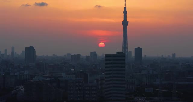 958767 - Aerial view of Tokyo cityscape at sunset, Tokyo, Japan