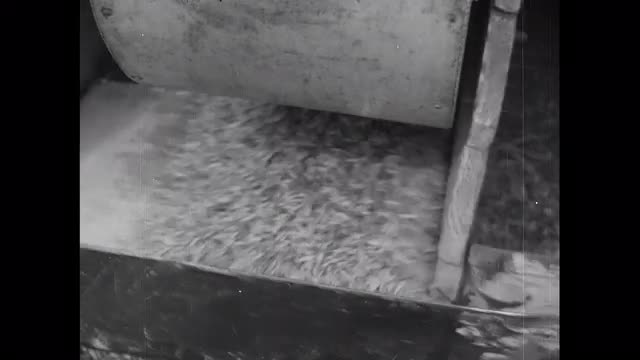 Antiquated, shaking threshing machine. In Saxony, CUs, hay. Various people/peasants working.