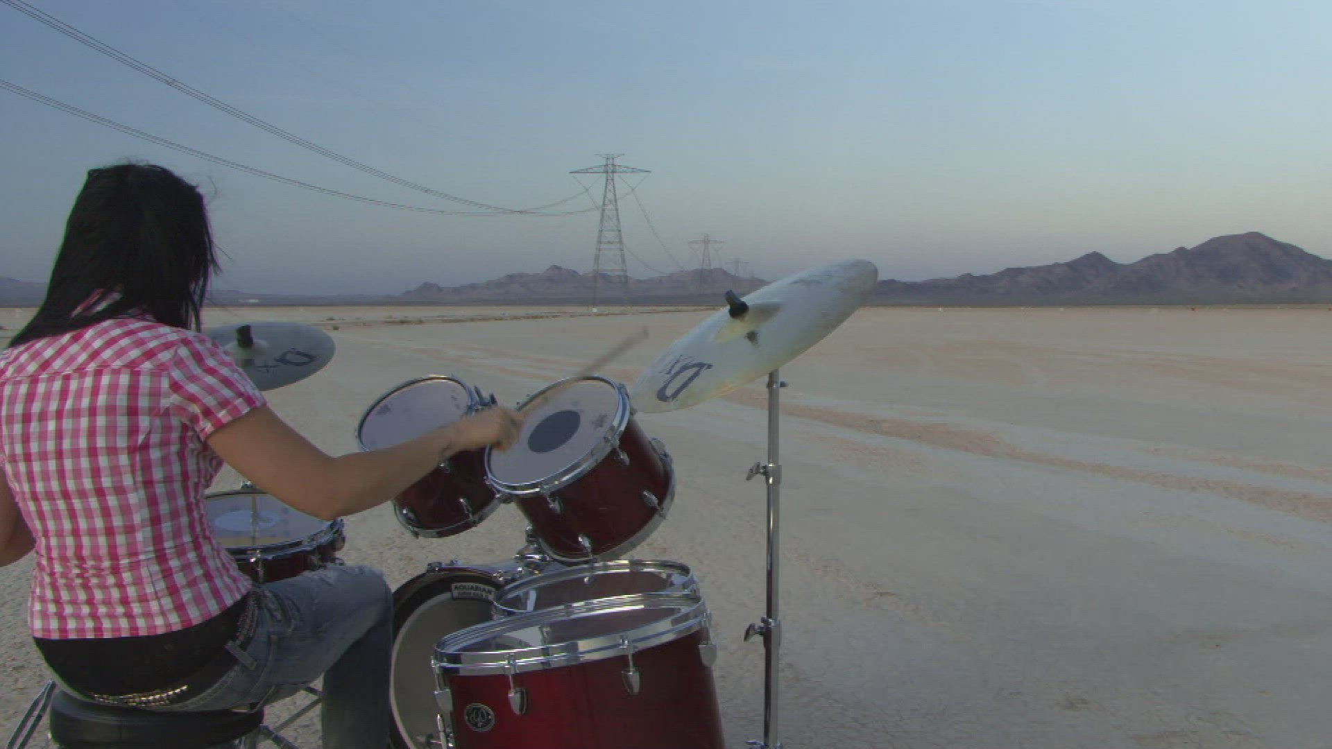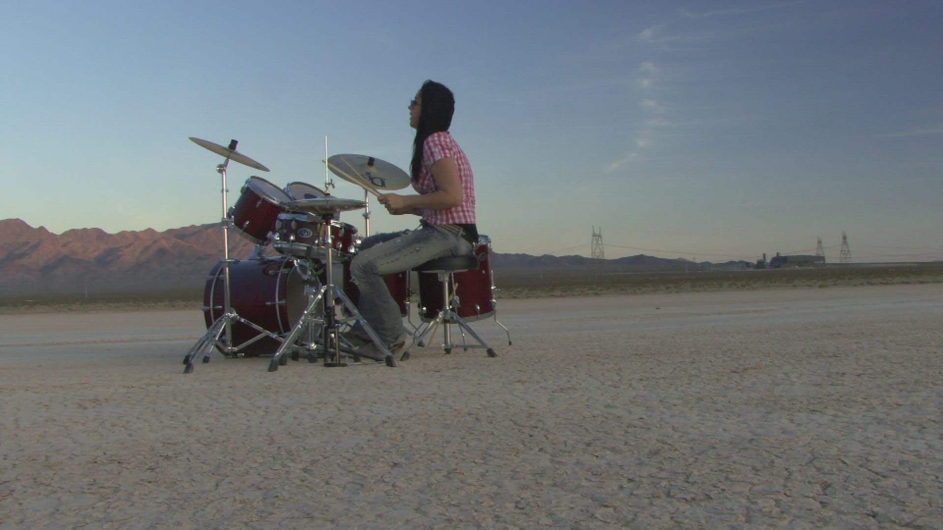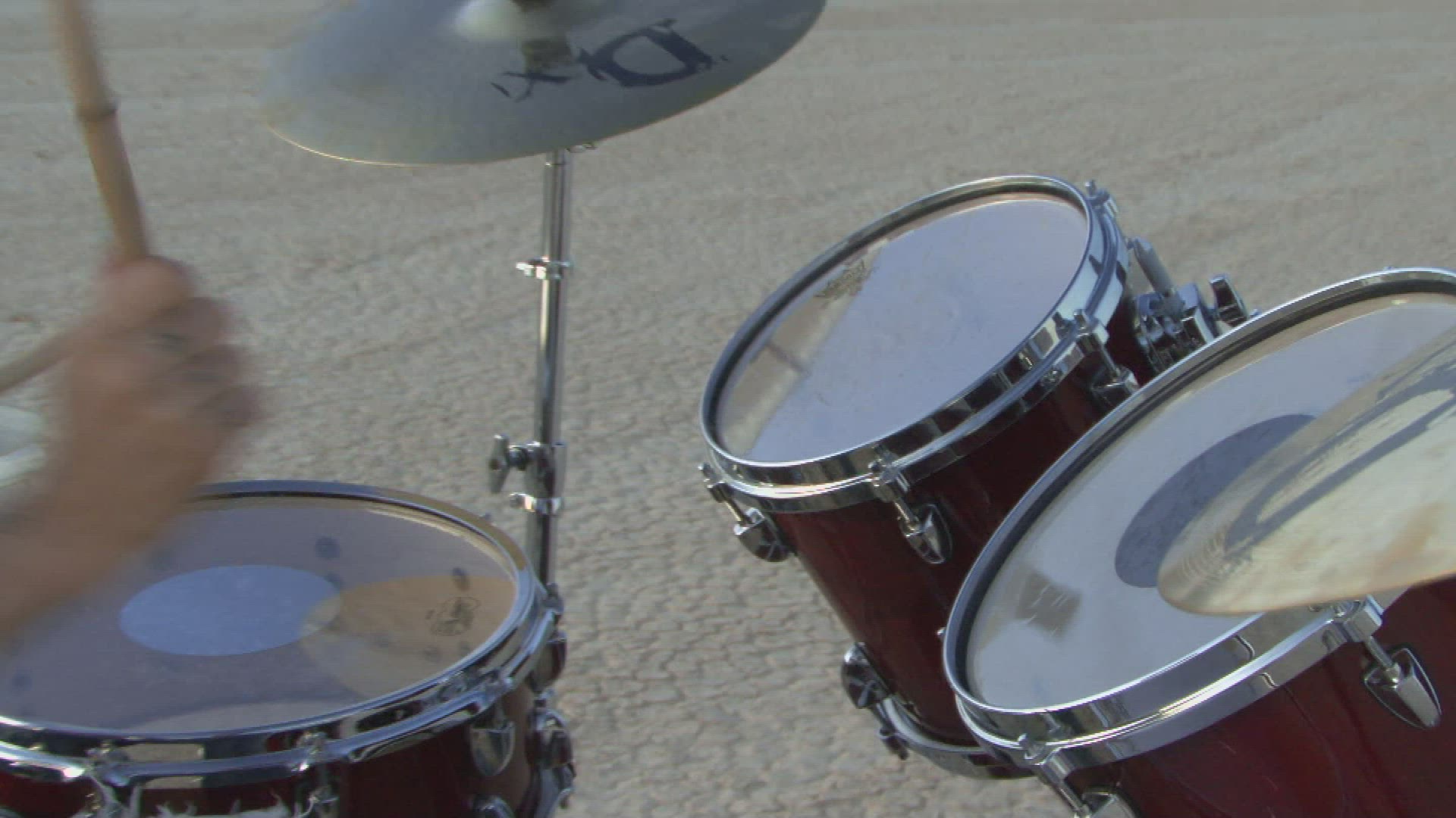 CU shot of a man drumming alongside a band in Cartagena, Colombia.