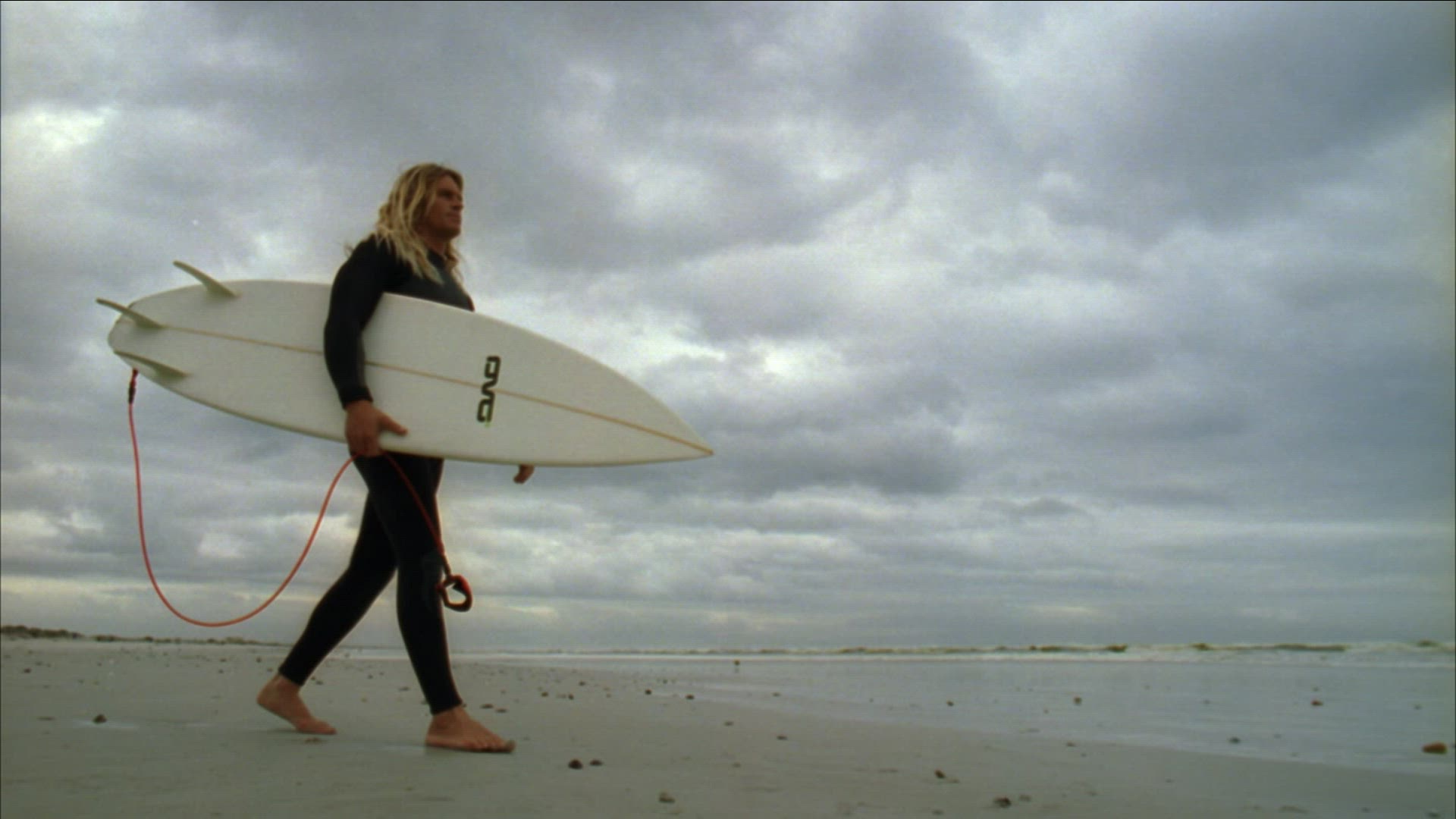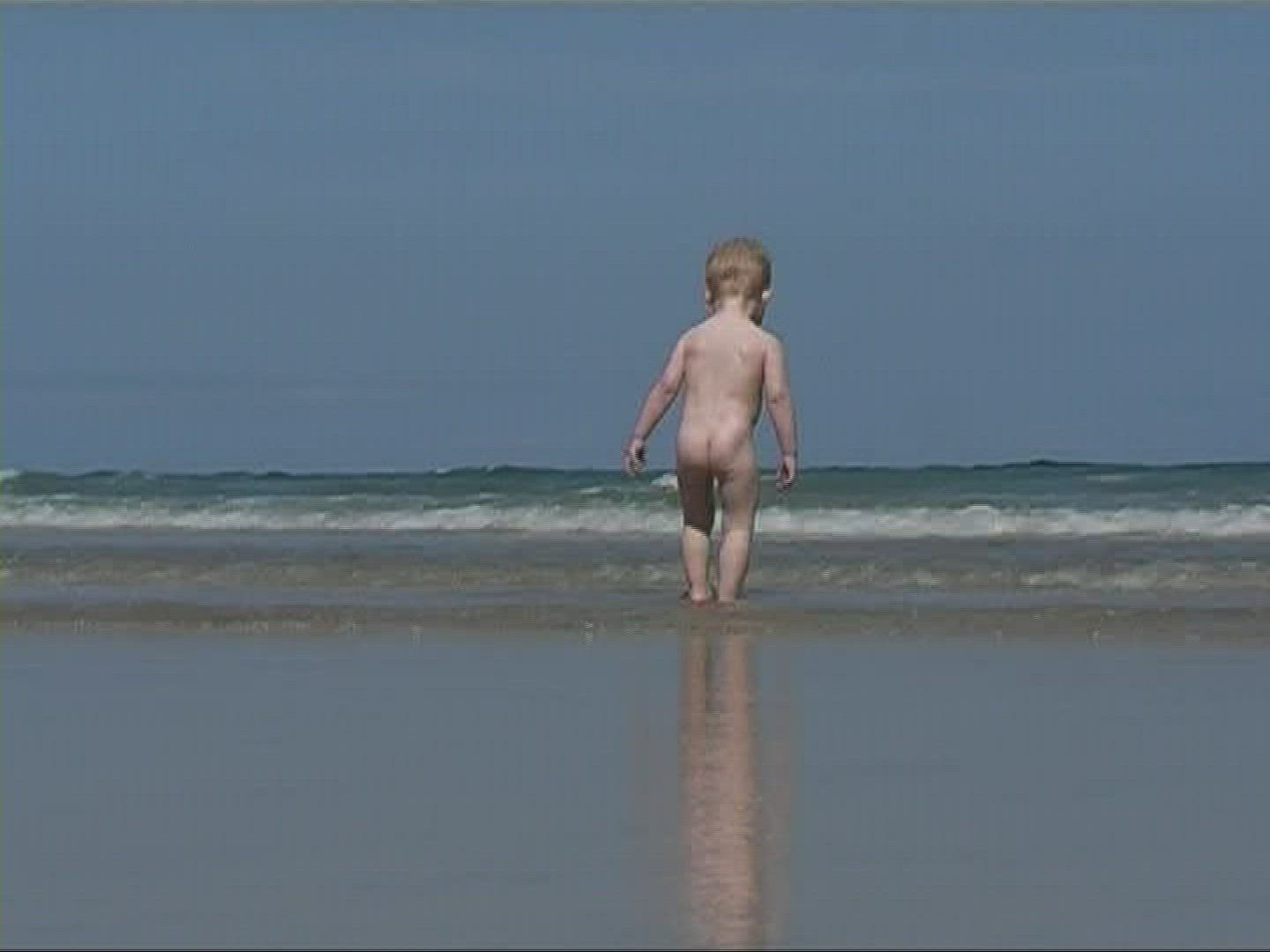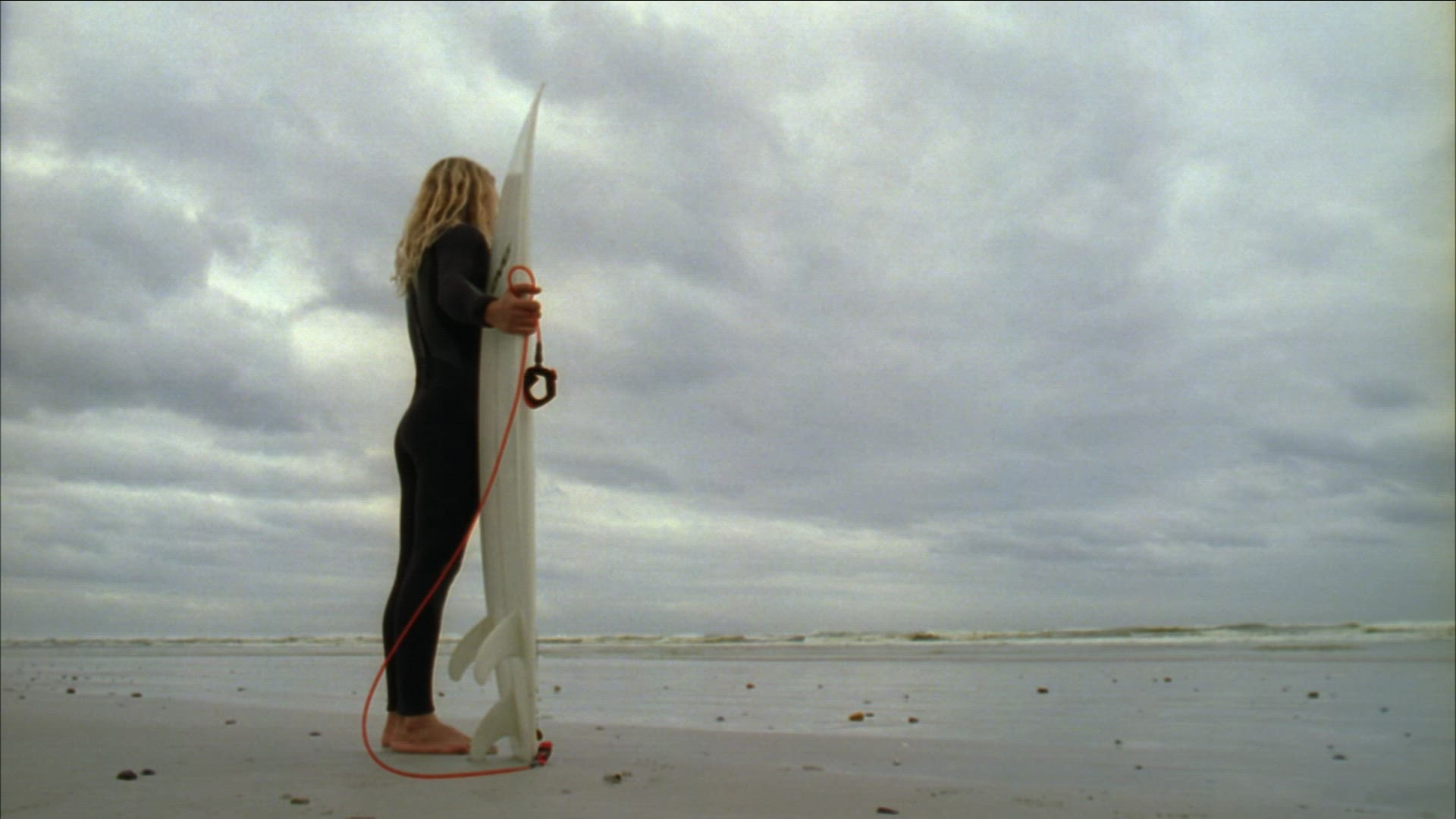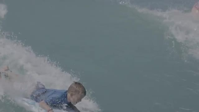 Dad teaches his daughter to stand on a surfboard. 8mm film scanned at 1920x1080