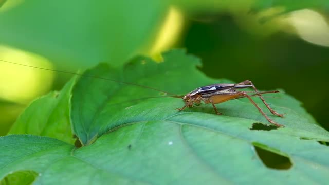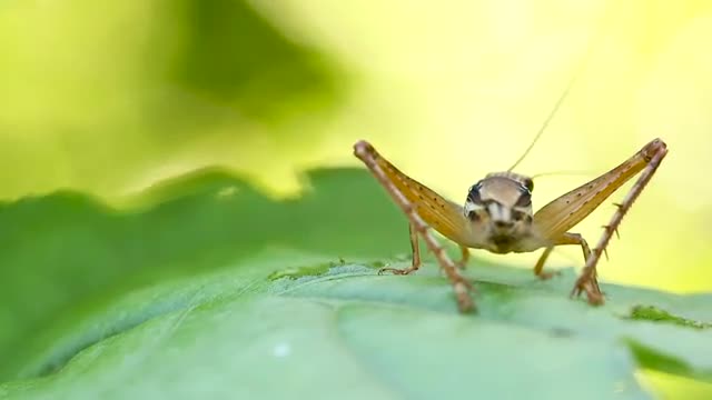 795729 - Cricket eating a leaf then jumps away, real time
