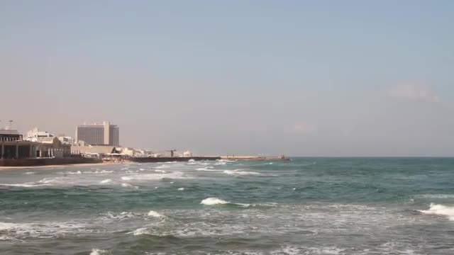 Static LS of waves rolling in on a beach in Tel Aviv, Israel.