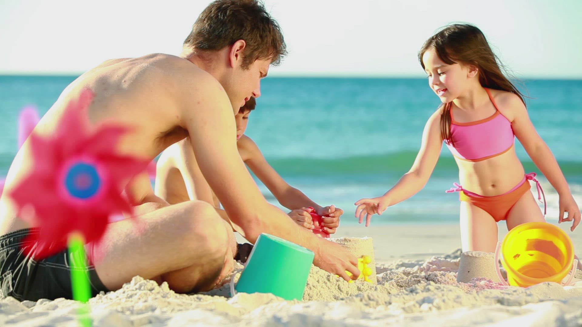 1000090 - Young girl playing with bubbles at beach
