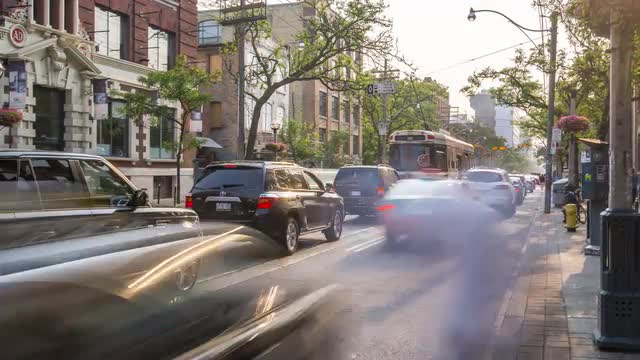 A timelapse of Gertrude St at dusk, facing west towards the Royal Exhibition Building.