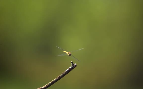 Dragonfly landing on twig