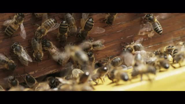 Bees at a beehive