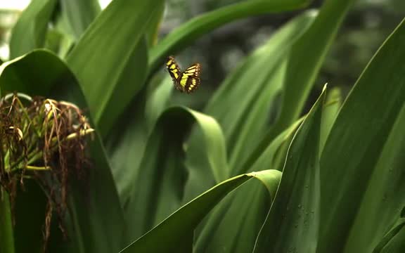 710565 - Butterfly takes off from leaf, replaced by another butterfly